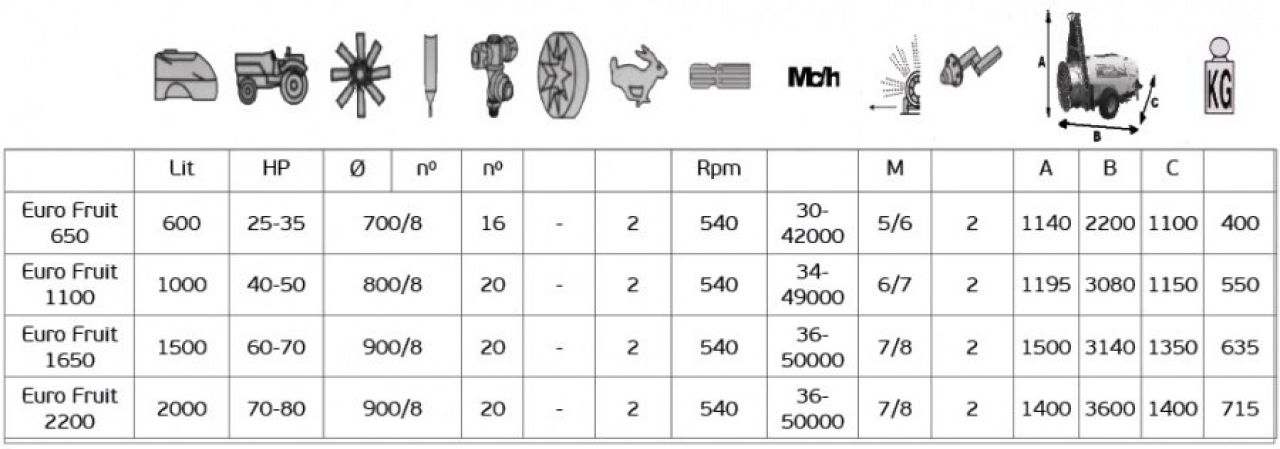 Νεφελοψεκαστήρας συρόμενος mod. EURO FRUIT με πύργο ψεκασμού δενδροκομικό